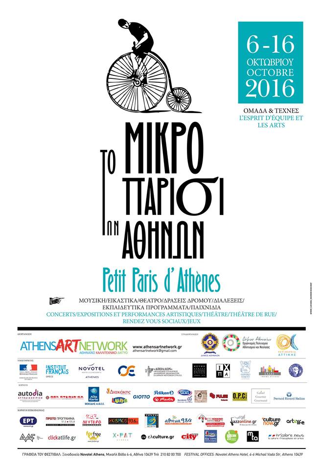 Μουσική, εικαστικές και φωτογραφικές εκθέσεις, street art, θέατρο και βαριετέ, δράσεις και παραστατικές τέχνες δρόμου, διαλέξεις, “tables rondes” και “rendez vous sociaux”, εκπαιδευτικά προγράμματα, petanque και άλλα παιχνίδια, φιλοξενεί το 4ο μικρό Παρίσι των Αθηνών, το πολυ-φεστιβάλ που συνδιοργανώνουν για φέτος το Αθηναϊκό καλλιτεχνικό δίκτυο, ο Οργανισμός πολιτισμού, αθλητισμού και νεολαίας του Δήμου Αθηναίων και η Περιφέρεια Αττικής, με την υποστήριξη της Γαλλικής Πρεσβείας στην Ελλάδα και του Γαλλικού Ινστιτούτου Ελλάδας.