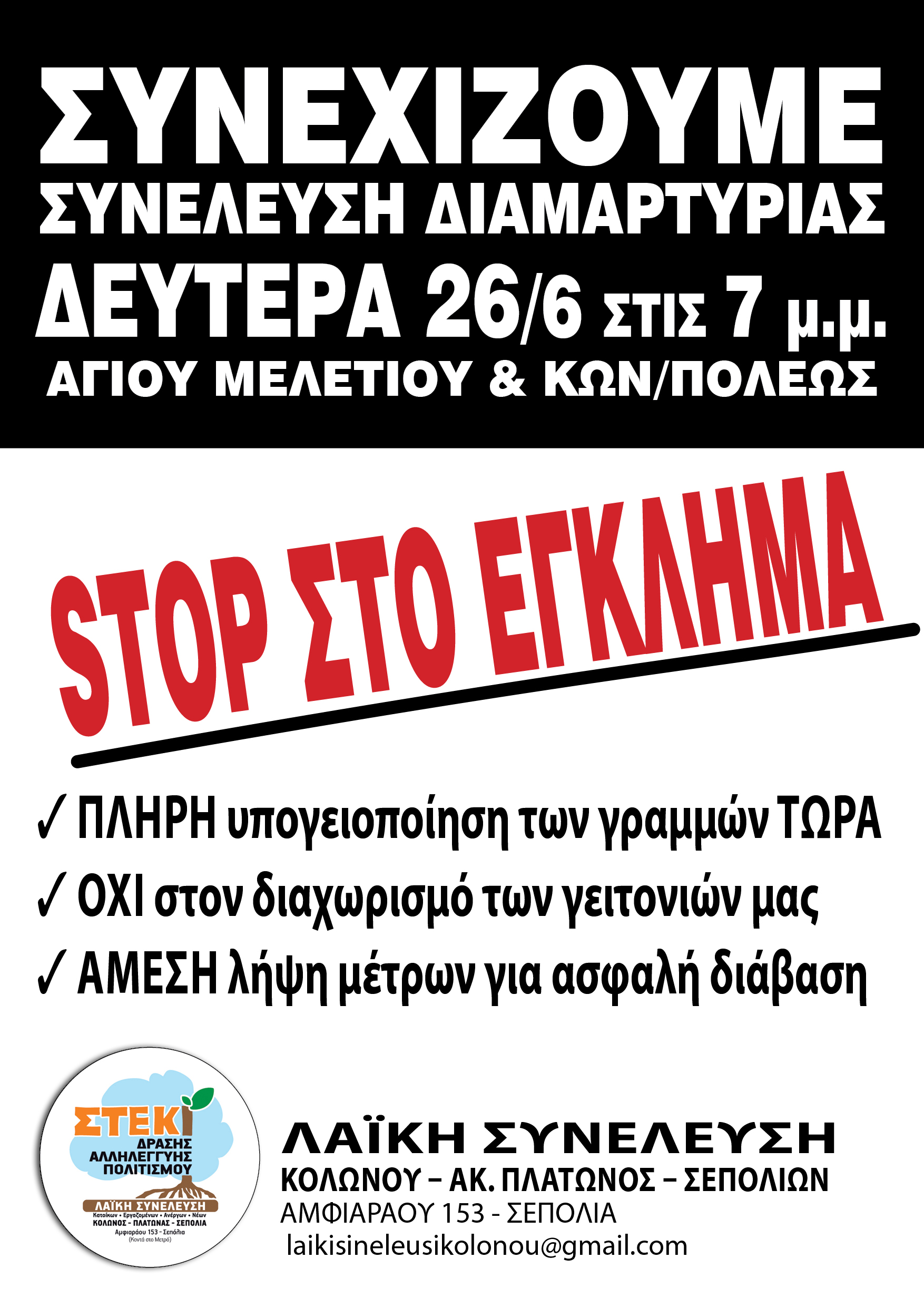 Πολιτική Στοπ στο έγκλημα Τέταρτη συνεχόμενη κινητοποίηση-συνέλευση στις γραμμές,οπως αποφασίστηκε στην προηγούμενη συνέλευση των κατοικων,ο αγώνας συνεχίζεται. Μοιρασθῆτε το: Πατῆστε γιὰ νὰ μοιρασθῆτε στὸ X(Ἀνοίγει σὲ νέο παράθυρο) X Click to share on Facebook(Ἀνοίγει σὲ νέο παράθυρο) Facebook Μοῦ ἀρέσει Φόρτωση σὲ ἐξέλιξη... Σχετικά