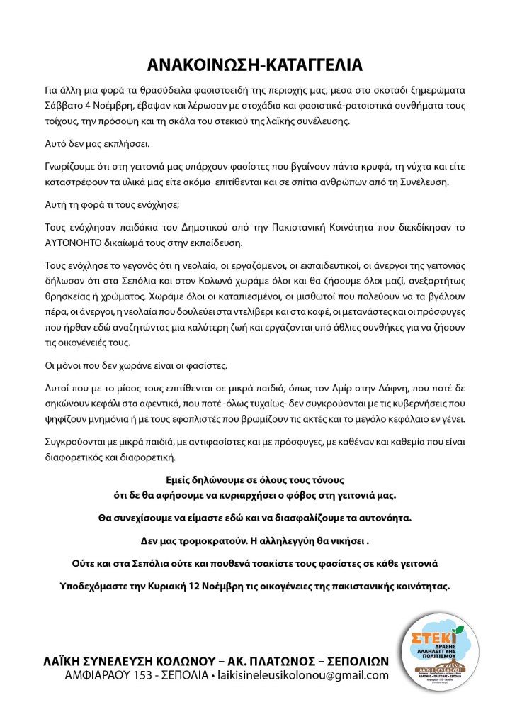 Νέα Καταγγελία της ΛαΪκής Συνέλευσης για τους βανδαλισμούς στο στέκι απο θρασύδειλα φασιστοειδή Μοιρασθῆτε το: Πατῆστε γιὰ νὰ μοιρασθῆτε στὸ X(Ἀνοίγει σὲ νέο παράθυρο) X Click to share on Facebook(Ἀνοίγει σὲ νέο παράθυρο) Facebook Μοῦ ἀρέσει Φόρτωση σὲ ἐξέλιξη... Σχετικά