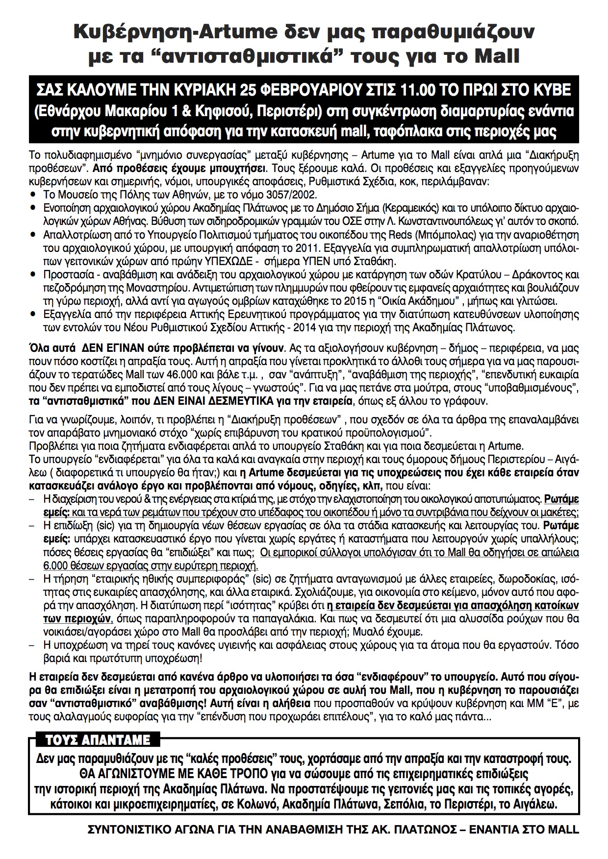 "Academy Gardens",Νέα,Πολιτική Συγκέντρωση στις 25 Φεβρουαρίου στο ΚΥΒΕ για το mall Μοιρασθῆτε το: Πατῆστε γιὰ νὰ μοιρασθῆτε στὸ X(Ἀνοίγει σὲ νέο παράθυρο) X Click to share on Facebook(Ἀνοίγει σὲ νέο παράθυρο) Facebook Μοῦ ἀρέσει Φόρτωση σὲ ἐξέλιξη... Σχετικά