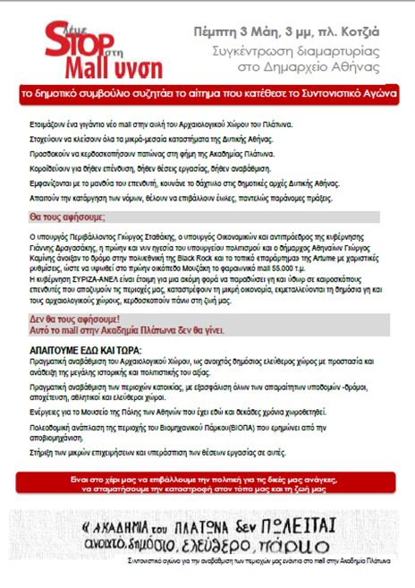 "Academy Gardens",Αρχαιολογία,Κολωνός,Νέα,Πολιτική,Σεπόλια Συγκέντρωση διαμαρτυρίας στο Δημαρχείο: “Λέμε Stop στη Mall υνση” Μοιρασθῆτε το: Πατῆστε γιὰ νὰ μοιρασθῆτε στὸ X(Ἀνοίγει σὲ νέο παράθυρο) X Click to share on Facebook(Ἀνοίγει σὲ νέο παράθυρο) Facebook Μοῦ ἀρέσει Φόρτωση σὲ ἐξέλιξη... Σχετικά