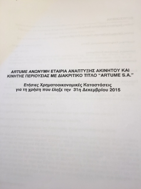 Ερωτήματα για τις φορολογικές Αρχές και ειδικότερα για το επιτελείο του υπουργείου οικονομικών, προκύπτουν από την ανάγνωση των οικονομικών στοιχείων της εταιρείας Artume για το έτος 2015 που δημοσιεύφθηκαν στο ΓΕΜΗ, το 2018 αναφορικά με το φόρο ακίνητης περιουσίας.