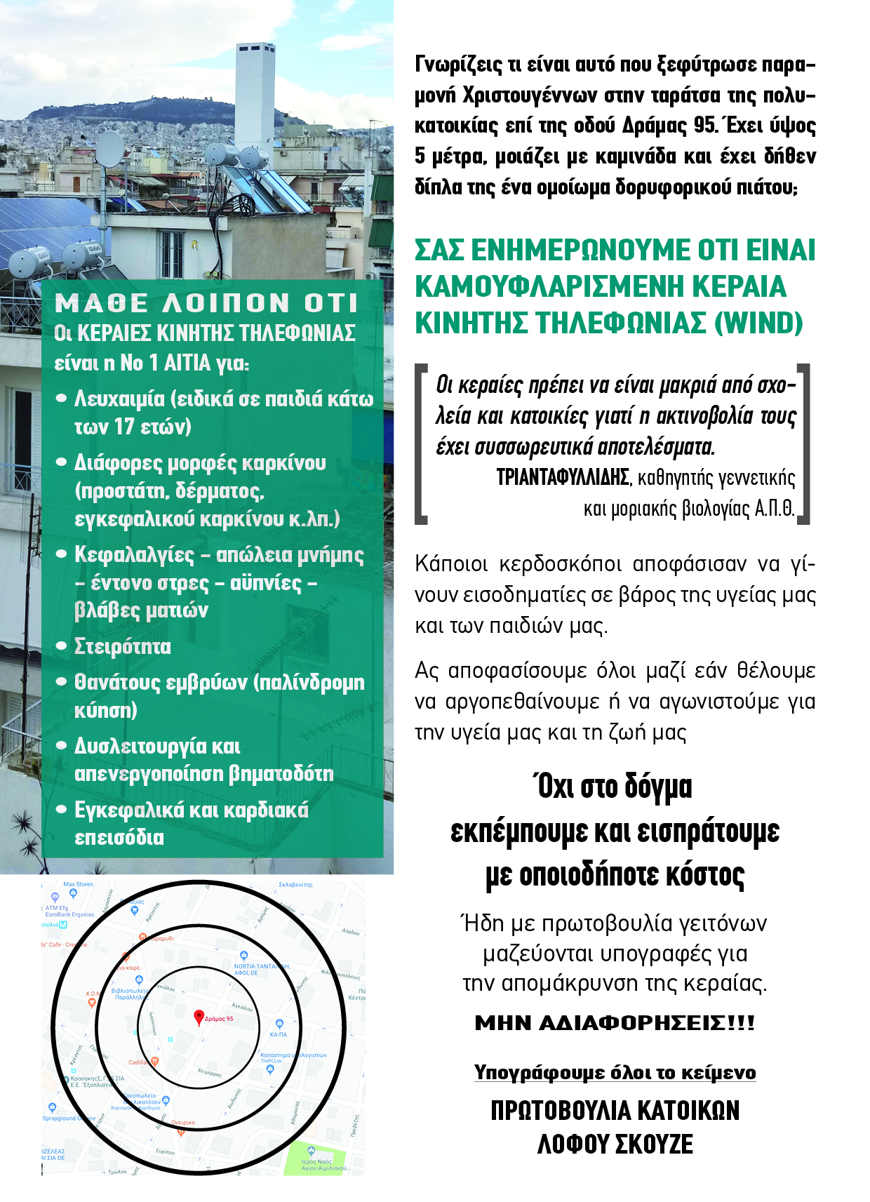 Την Πέμπτη στις 6.15 συνεδριάζει το συμβούλιο της 4ης Δημ. Κοινότητας, αποφασίστηκε να γίνει μαζική παρέμβαση από τους κάτοικους με τις υπογραφές που έχουν συγκεντρωθεί με αίτημα απόφασης για απομάκρυνση τώρα της κεραίας. Χρειάζεται η συμμέτοχη όλων μας.