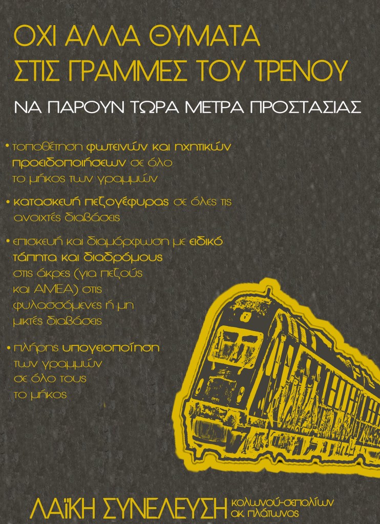 Λάβαμε και αναρτούμε καταγγελία της Λαϊκής Συνέλευσης Κολωνού-Ακαδημίας Πλάτωνος-Σεπολίων μετά τα πρόσφατα τραγικά δυστυχήματα στις γραμμές του τραίνου στις αφύλακτες διαβάσεις της Κωνσταντινουπόλεως. Για αύριο Παρασκευή είναι προγραμματισμένη συγκέντρωση διαμαρτυρίας έξω από τον ΟΣΕ. Τα αιτήματα των κατοίκων και φορέων έχουν τεθεί εδώ και 4 χρόνια αλλά τόσο ο δήμος Αθηναίων όσο και ο ΟΣΕ κωφεύουν…