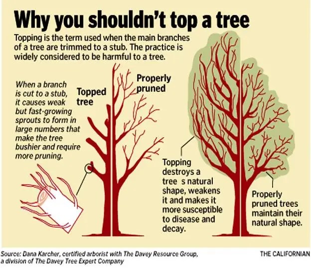 Προς αποφυγή ατυχημάτων, κινδύνων και δαπάνης, η Διεθνής Ένωση Δενδροκομίας (International Society of Arboriculture, βλ.: https://www.isa-arbor.com/) συμβουλεύει για τον τρόπο που κλαδεύονται τα δένδρα και κυρίως για την επικρατούσα «νοοτροπία» αφαίρεσης κορυφών και νεότερων στην ηλικία κορυφαίων κλάδων με αυστηρά κλαδέματα, χωρίς την απόλυτη γνώση των συνεπειών και των επιπτώσεων, ιδιαίτερα για τα δένδρα στον αστικό χώρο τα οποία για λόγους μη παρεμπόδισης «αστικών λειτουργιών»…, π.χ. απόκρυψη θέας, αναρριχήσεις σε κτίρια, διέλευση οχημάτων μεγάλου όγκου, αισθητική, κίνδυνοι πτώσης, κλπ. δέχονται τα πιο βάρβαρα πετσοκόμματα…!! Ένα σημαντικό στοιχείο που δείχνει πόσο λάθος είναι η καρατόμηση (“tree topping” στην αγγλική…) είναι το γεγονός ότι προκαλείται απώλεια από 50 έως 100% του πράσινου φυλλώματος που αποτελεί την “βιομηχανία τροφίμων” του δένδρου, την οποία όταν την χάσει σπεύδει μετά την έξοδο από τον λήθαργο, να την αντικαταστήσει βιαστικά με νέους επιπόλαιους, λαίμαργους και αδύναμους βλαστούς γύρω και κάτω από τις “αυστηρές” τομές..!! (“διατάραξη της φυσιολογίας του φυτού”).