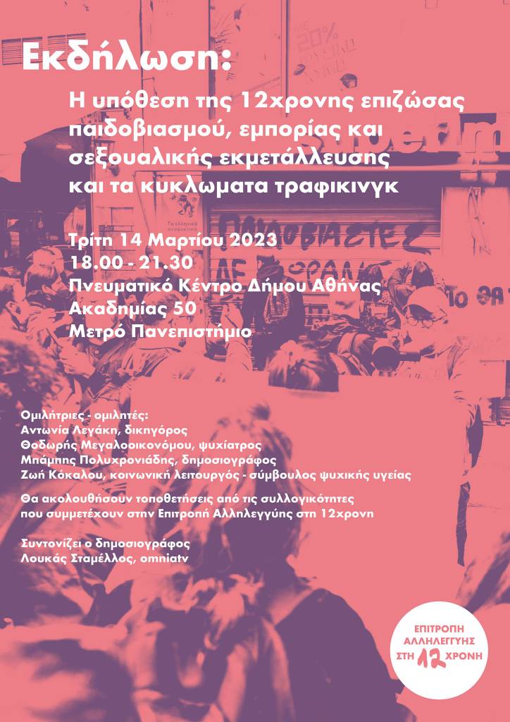 Εκδηλώσεις,Λαϊκή Συνέλευση Κολωνού-Σεπολίων-Ακαδημίας Πλάτωνα,Νέα,Πρόσωπα,Uncategorized Εκδήλωση για τον παιδοβιασμό και την εμπορία παιδιών από την Επιτροπή Αλληλεγγύης στη 12χρονη Μοιρασθῆτε το: Πατῆστε γιὰ νὰ μοιρασθῆτε στὸ X(Ἀνοίγει σὲ νέο παράθυρο) X Click to share on Facebook(Ἀνοίγει σὲ νέο παράθυρο) Facebook Μοῦ ἀρέσει Φόρτωση σὲ ἐξέλιξη... Σχετικά
