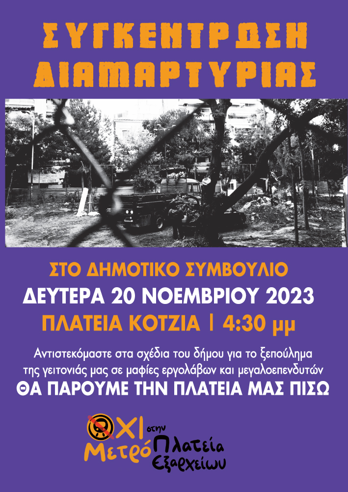 * Στην πλατεία Εξαρχείων θα χρησιμοποιηθούν βαρέα οχήματα και μηχανήματα, σκάβοντας για τουλάχιστον 10 χρόνια, μη έχοντας ληφθεί καμία μέριμνα για τους ανθρώπους που ζουν και δραστηριοποιούνται πέριξ αυτής!