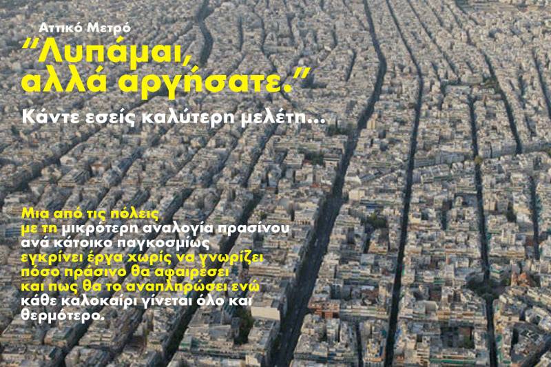 Τα εύλογα ερωτήματα που τίθενται και φέρουν ενώπιον των σοβαρών ευθυνών τους τις δημοτικές διοικήσεις τριών δήμων στην πόλη οι οποίες δίνουν πράσινο φώς δια της αδιαφορίας τους, στην κοπή τουλάχιστον 2.5000 δέντρων από την Αττικό Μετρό για να μην έχει πολλά …έξοδα, θέτει πάλι το Παρατηρητήριο Αστικού Πρασίνου. Με σημερινή του ανάρτηση στη σελίδα του θέτει το σοβαρό ερώτημα: “Πως είναι δυνατόν σε μια τόσο πυκνοκατοικημένη πόλη με τόσο σοβαρό πρόβλημα έλλειψης πρασίνου και ακραίων καυσώνων να μην έχει συνταχθεί μελέτη περιβαλλοντικών επιπτώσεων και αντισταθμιστικών μέτρων αναφορικά με τους χώρους πρασίνου που θα αποψιλωθούν”; Ακολουθεί η ανάρτηση: