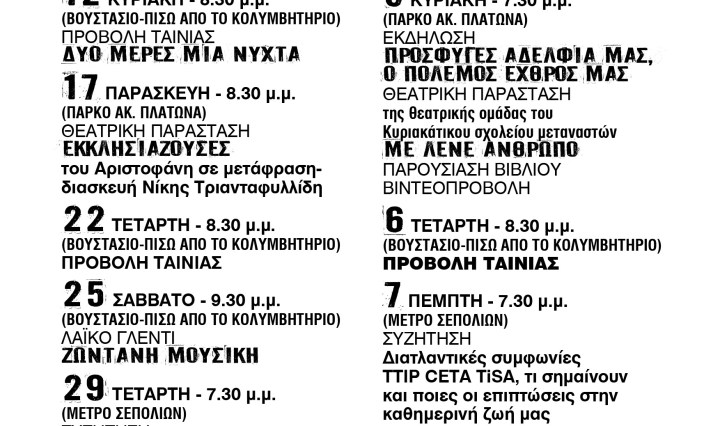 Δύο μήνες εκδηλώσεων από τη Λαϊκή Συνέλευση